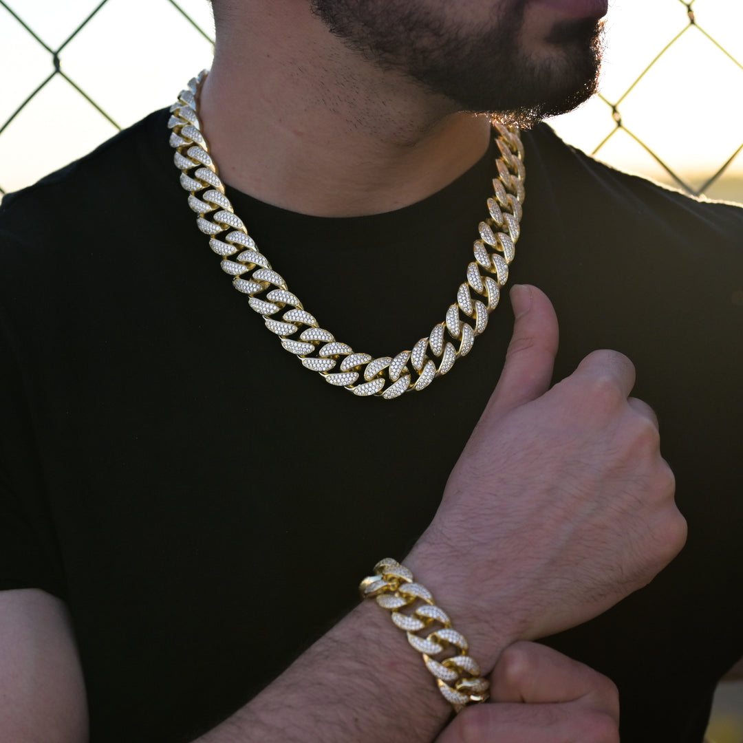 Diamond Miami Cuban Chain/Bracelet Bundle (19mm) in Yellow Gold