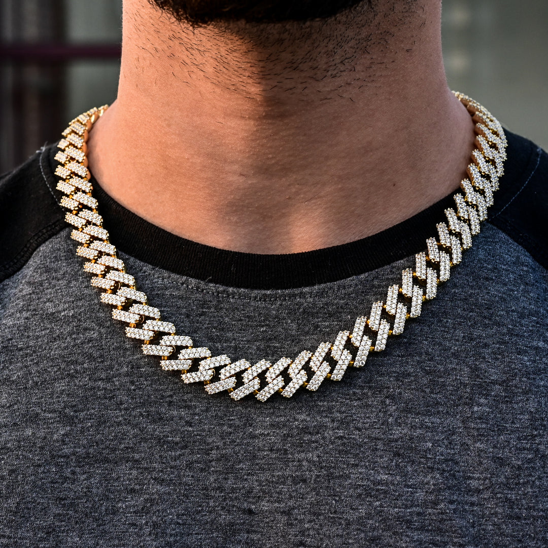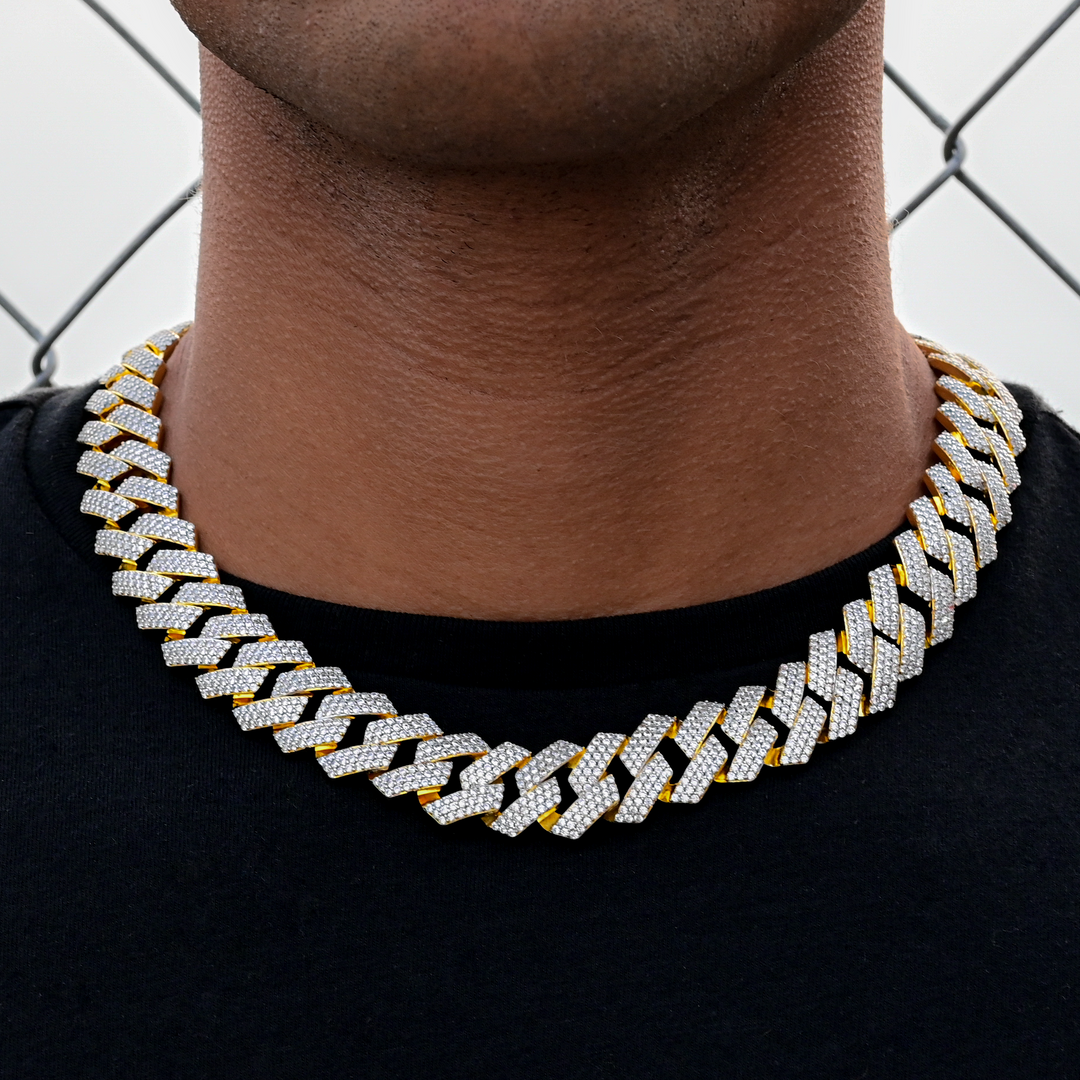 Diamond Prong Cuban Necklace (14mm) in Yellow Gold