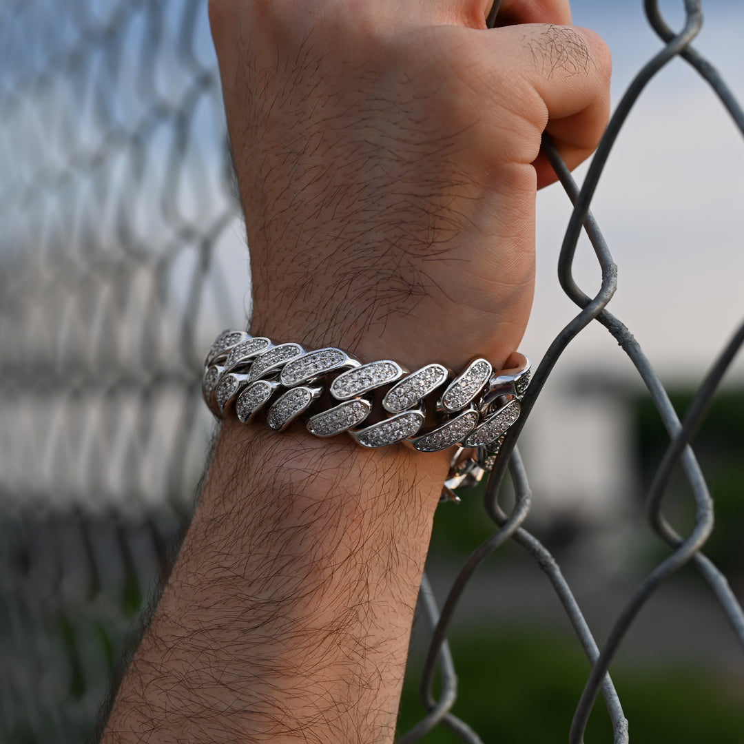Diamond Miami Cuban Bracelet (19mm) in White Gold