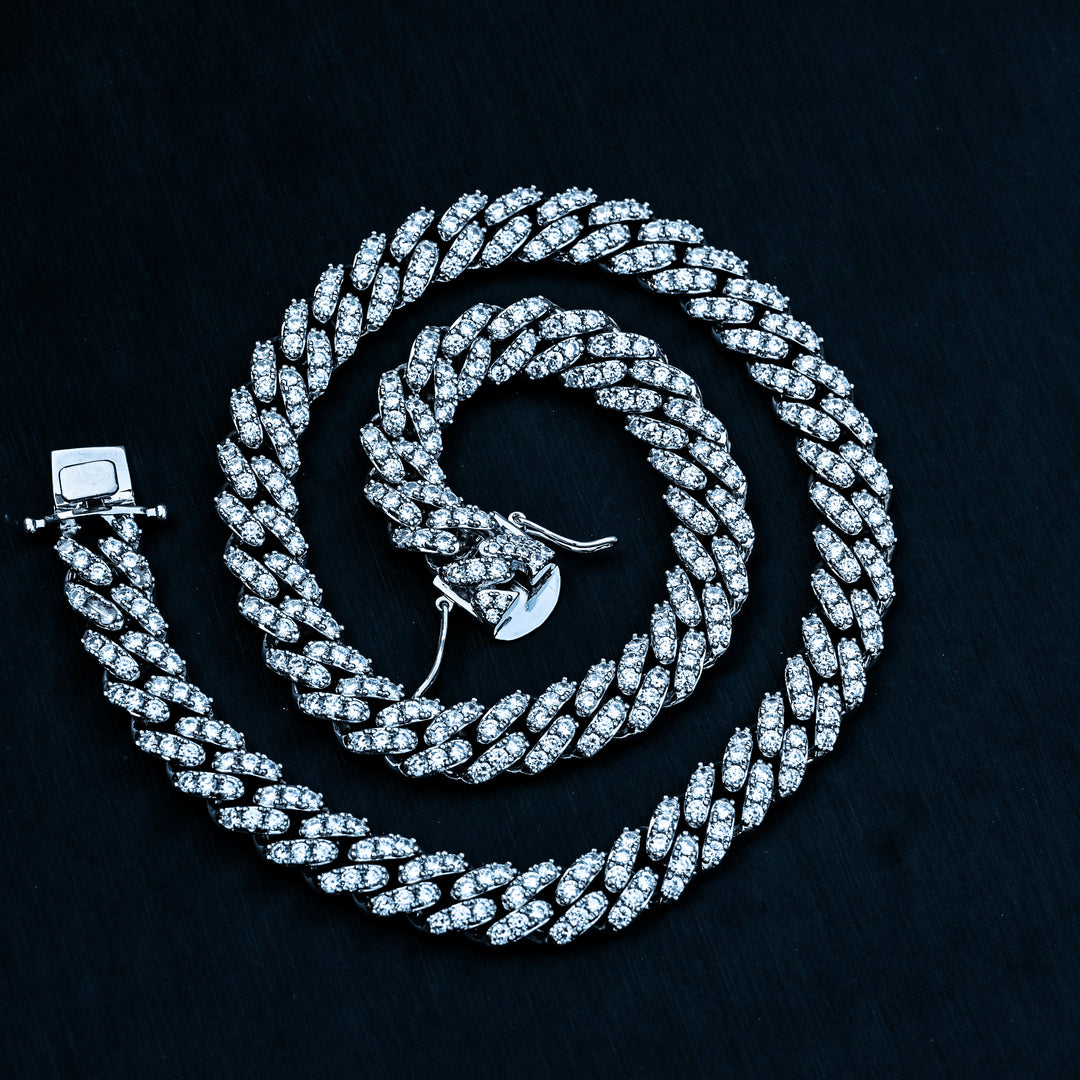 Diamond Cuban Link Chain (10mm) in White Gold