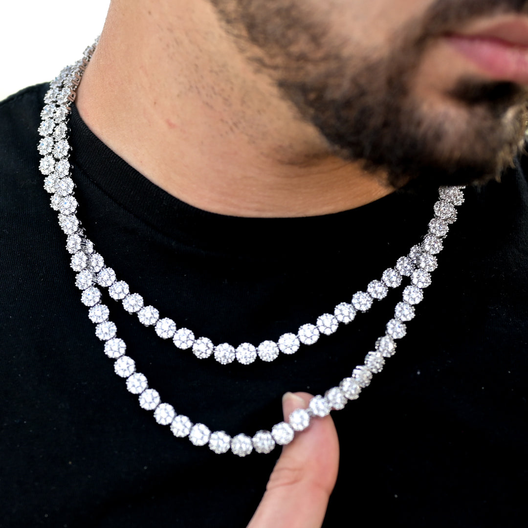 Flower Set Necklace (4mm) in White Gold